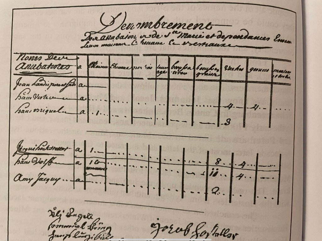 In the first list of Anabaptists who left Bern, Switzerland in 1697 for Ste. Marie aux Mines, France. It includes Jacqui Hochstetler (Jakob Hochstetler, later identified probably as Jakob of Winterkraut, a minister) and Amy Jacqui (Jacob Amman, founder of the Amish).